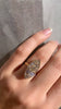 Too much to love about this dreamy ring! The diamonds in this ring are large and incredibly gorgeous! The ring is super low to the finger and the scalloped metal work in the gallery adds lovely Edwardian character!