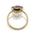We love the dark and moody feel of this piece that captures so many marvelous themes from the Victorian era. Beautiful old mine cut diamonds shimmer against the dark patina on the silver set atop warm and bright yellow gold.