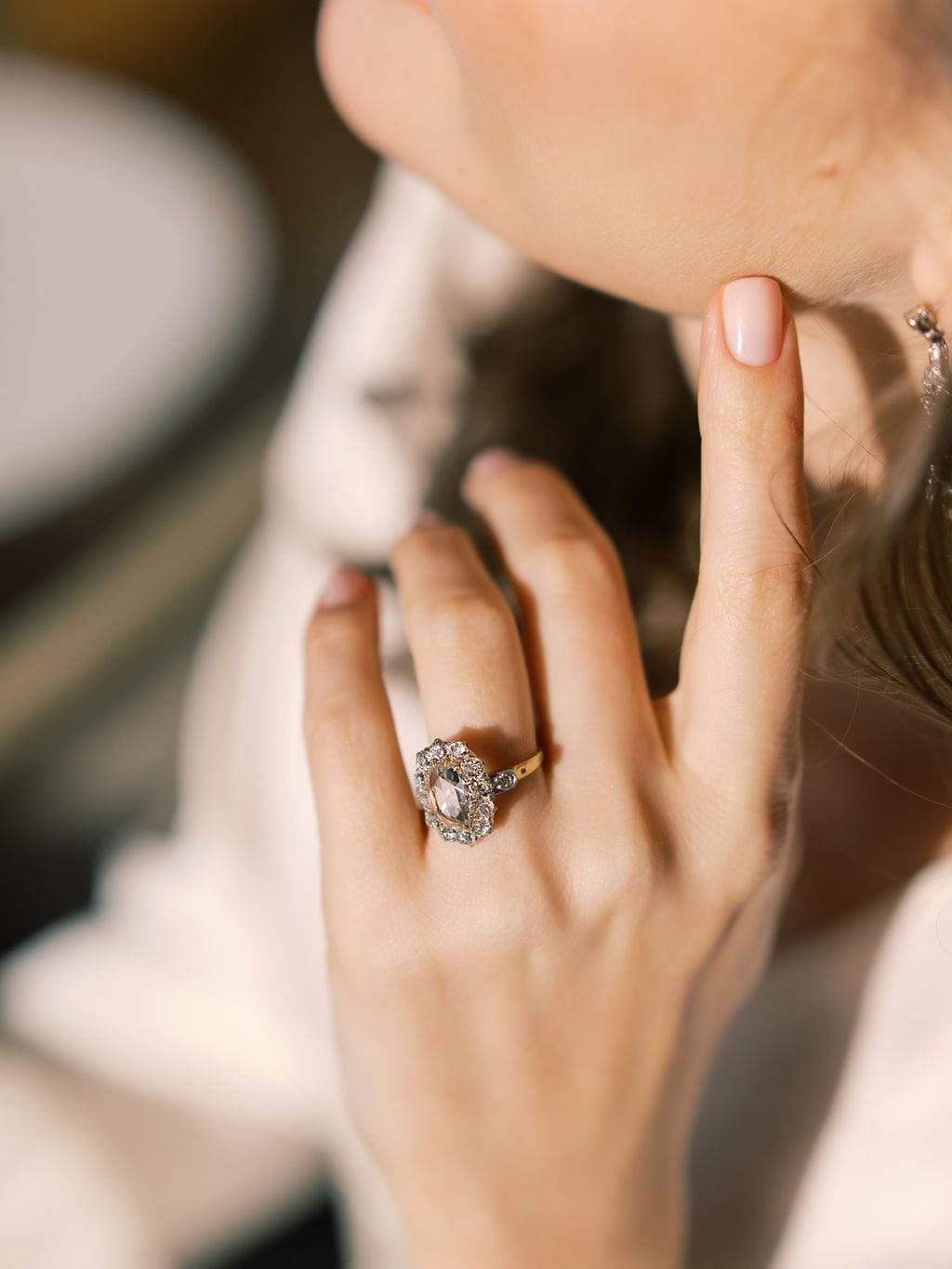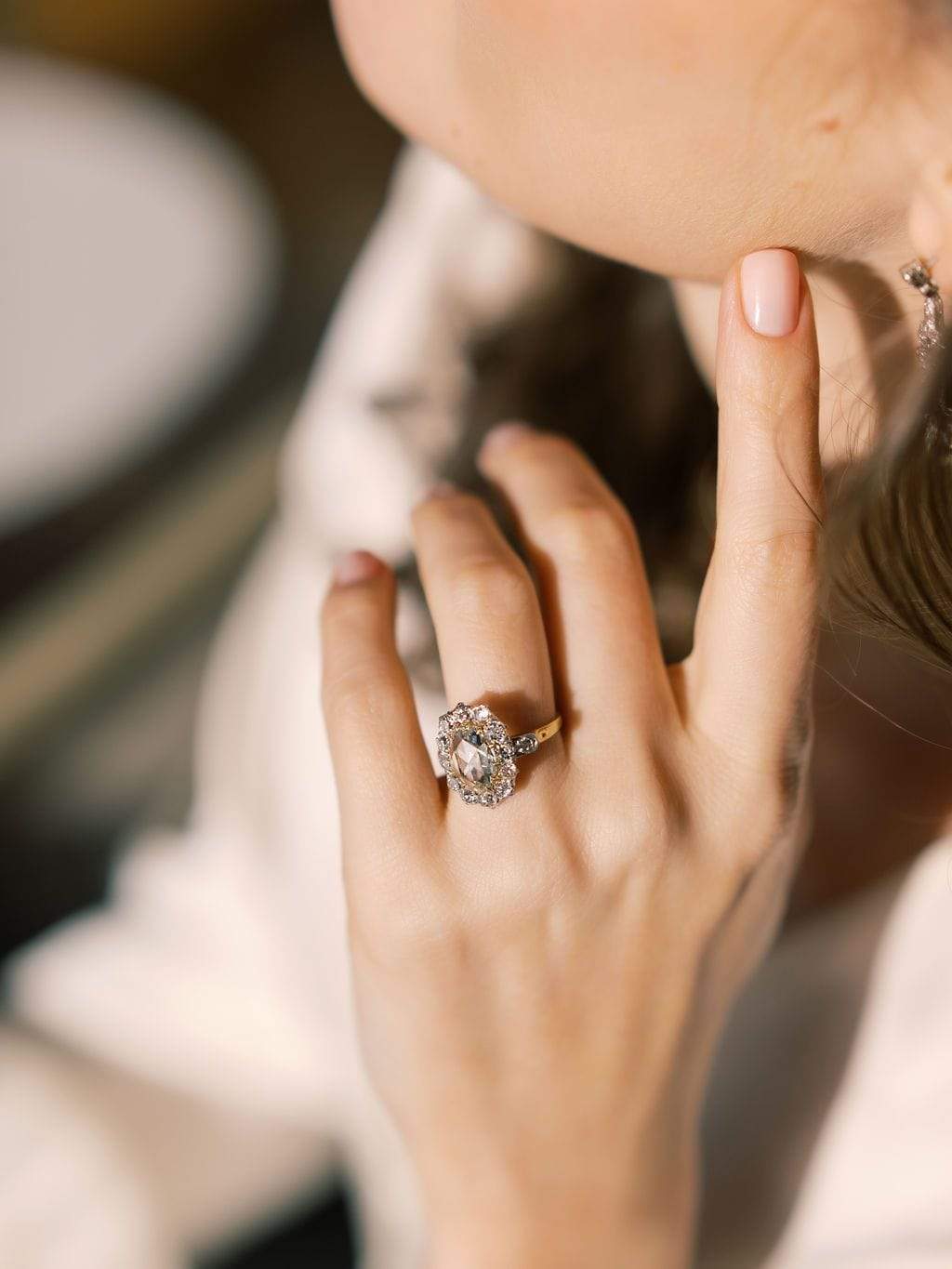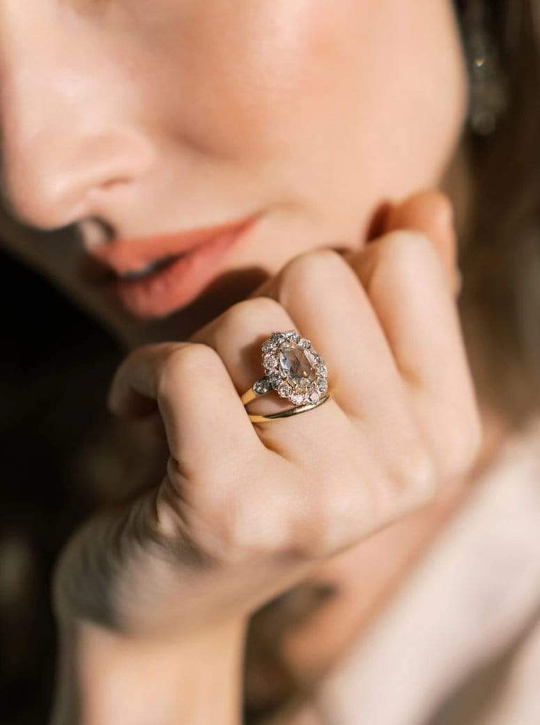 Antique Oval Rose Cut Diamond Halo Engagement Ring