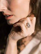 This is a striking piece with dreamy stones! The elongated shape adds a very elegant feel to this low-profile ring and the diamonds shimmer and shines endlessly.