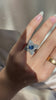 The Patricia ring is an authentic vintage sapphire and diamond ring from the Edwardian Era circa 1900. The ring centers a GIA-certified Cambodian no-heat oval cut sapphire of approximately 1.25-carats surrounded by a double marquise design set with 32 old cut diamonds of approximately J-K-L color, VS-SI clarity combining for roughly 1.75-carats. The stone is set in an 8-prong silver and 18kt yellow gold setting. The ring is currently size 7.5 and can be resized!