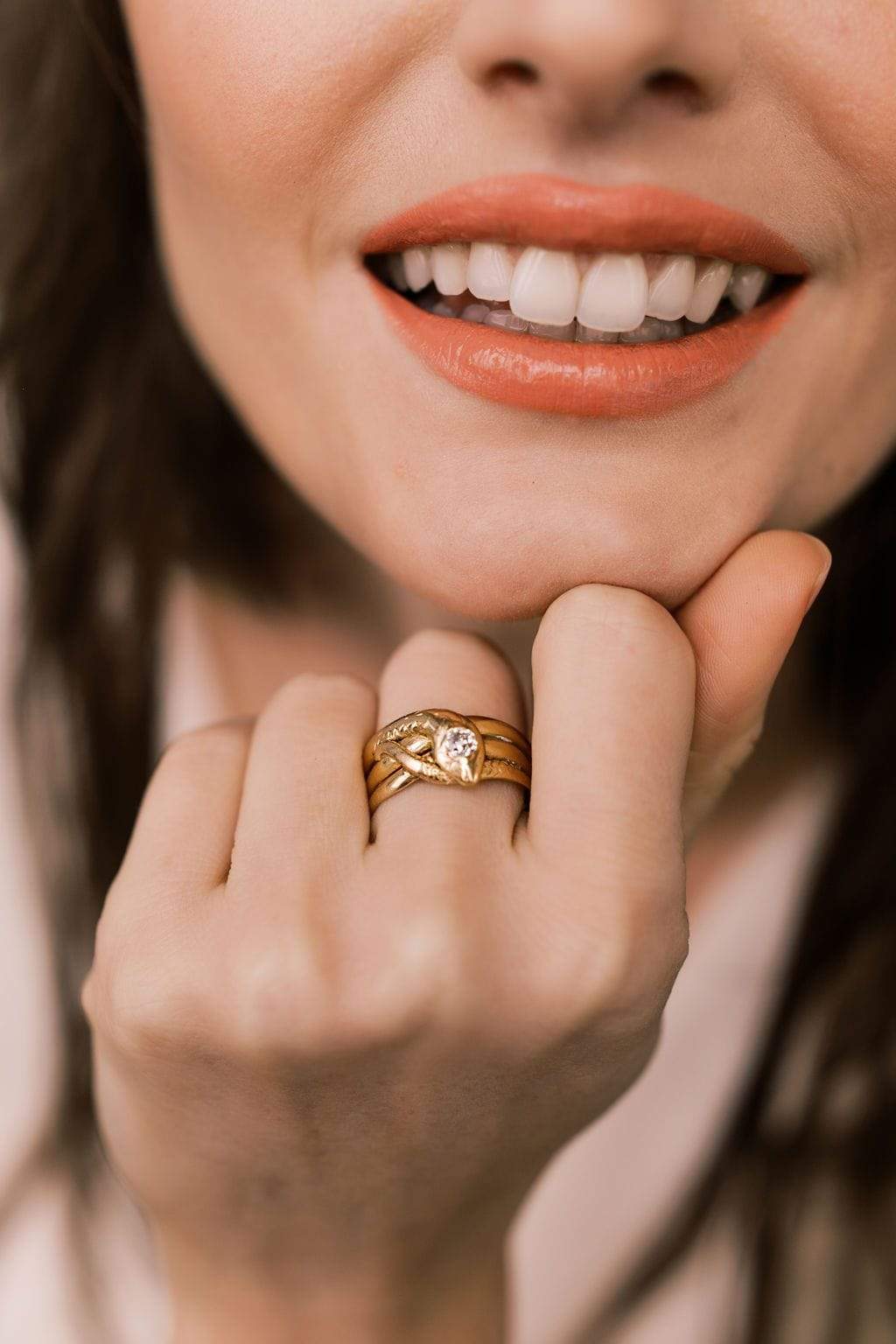 A classic antique style, this snake ring wraps the finger so chicly with the cutest old mine cut in the center. This ring makes any finger look THAT much cooler.