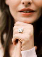 The panel ring of our dreams. The diamonds are so bright and vibrant. The soft square shape is ever-alluring and is super low profile. The ring originally had a glass stone so we replaced it with this gorgeous authentic old mine cut diamond and it is a stunning combination!