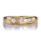 The Osha ring centers three adorable Old Cut diamonds, set in a low profile and flat gypsy ring design for a cozy and secure fit on any finger. A charming addition to any antique lover's collection!