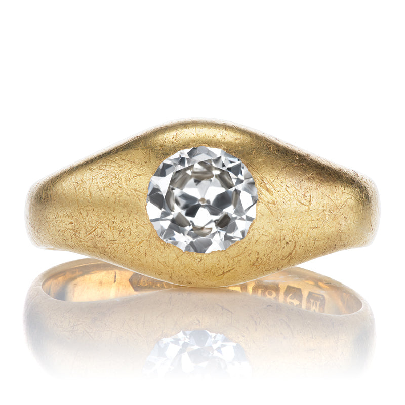 Antique Victorian Era Yellow Gold Gypsy Ring with Transitional Cut Center Stone