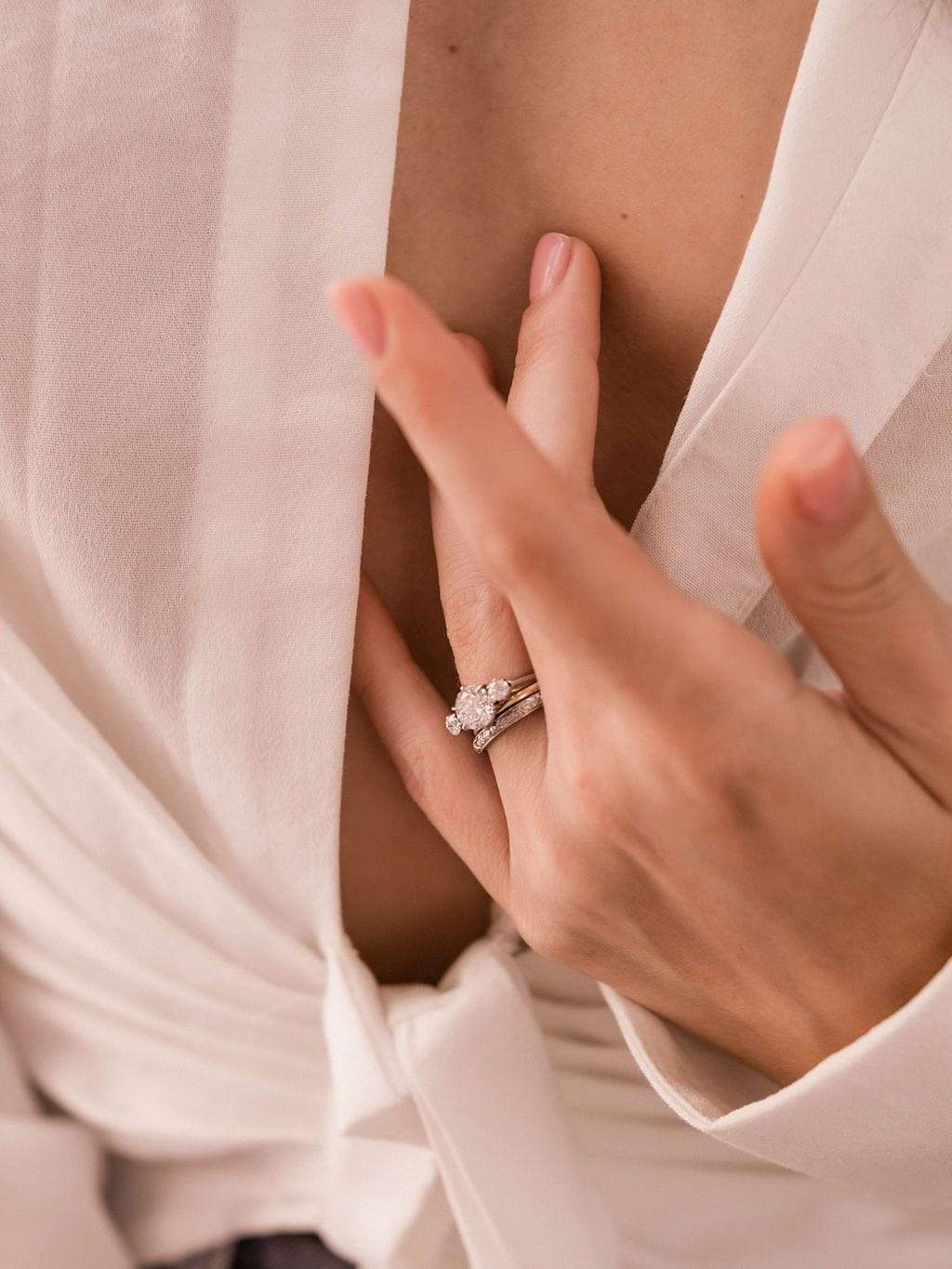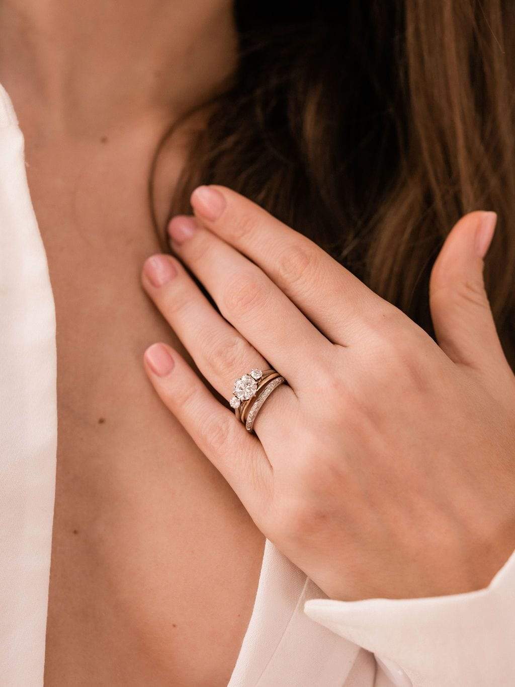 Shown with the Perfect band in yellow gold and the Jane band in platinum.