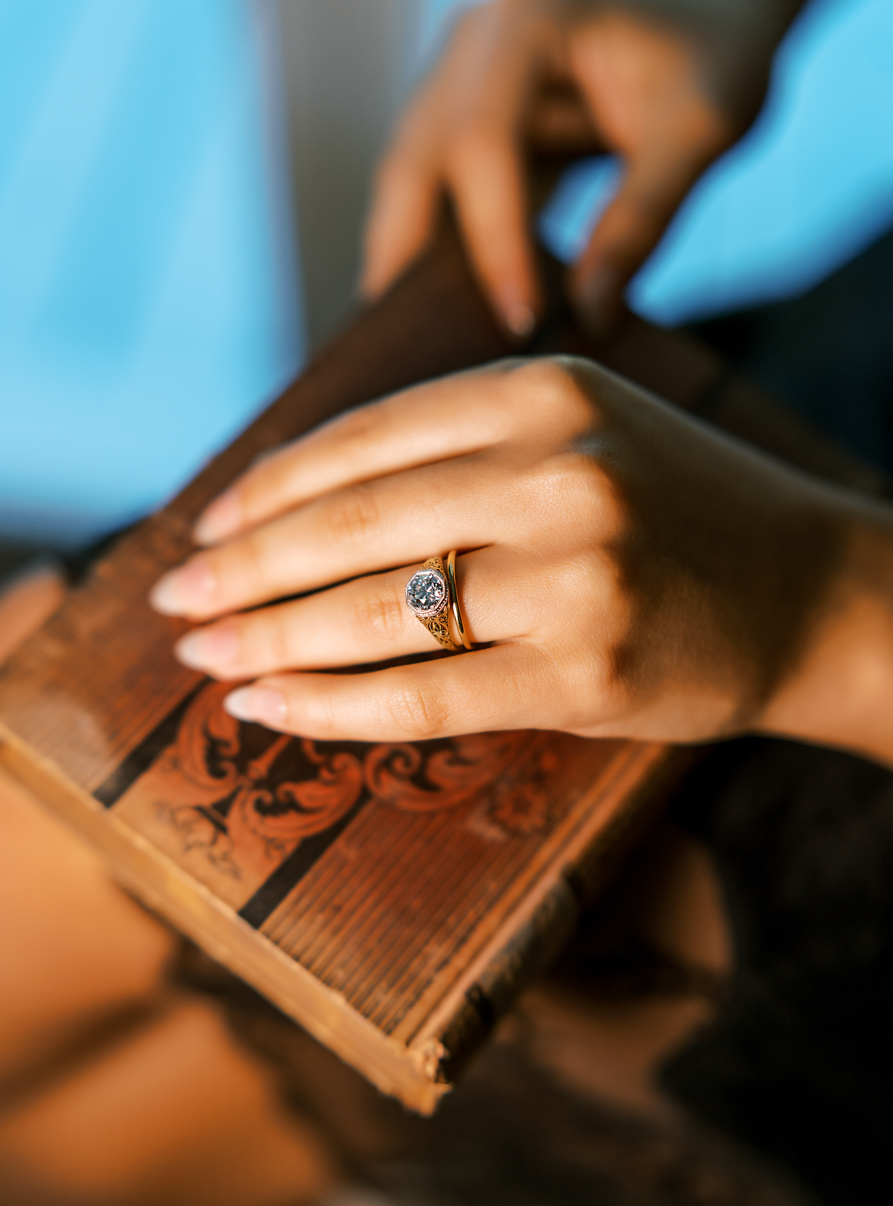 A simply stunning vintage find. The diamond is lovely and vibrant white and just a dream, but this ring is so unique with its octagonal outline, super low profile, and gorgeous woven filigree.