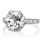 The Effie ring is an authentic vintage engagement ring from the Art Deco era. The ring centers a GIA certified 3.61-carat old European cut diamond of L color, VS2 clarity. The stone is set in a 6-prong platinum setting with three small diamonds set into each shoulder. The ring is currently size 6.25 and can be resized!