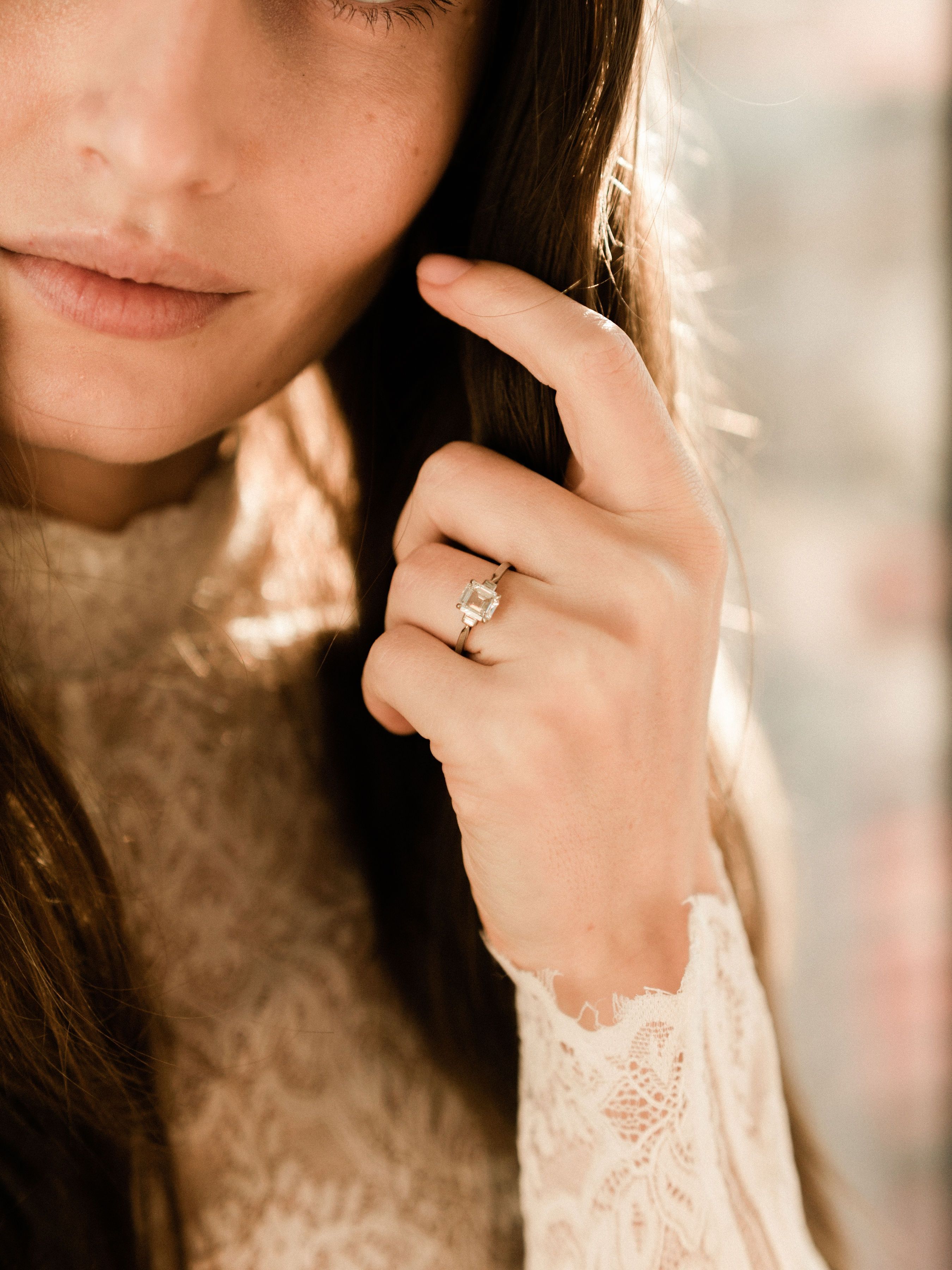 A very sleek piece in its minimalism. The diamond of this ring is quite amazing: icy white and super clear with a bit of a flatter shape that creates a larger face-up view and a unique scintillation!