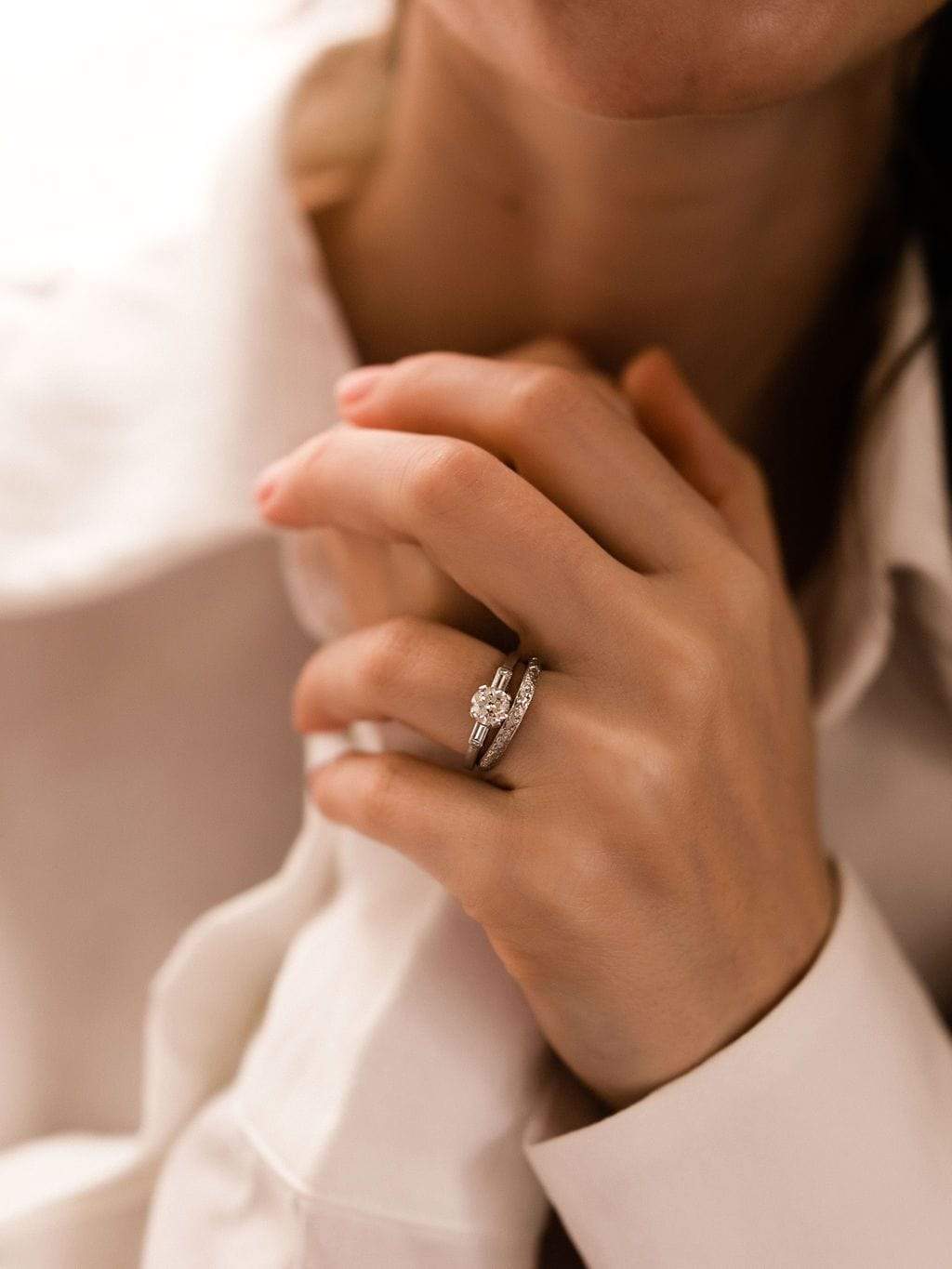 A clean and timeless style! High quality diamonds create a vibrant look and the linear themes lean an Art Deco vibe!