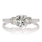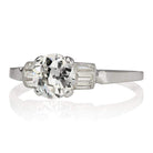 The Talia ring is an authentic vintage engagement ring from the Art Deco Era. The ring centers a GIA certified 1.06-carat old European cut diamond of I color, VS1 clarity. The stone is set in a 4-prong platinum setting with three baguettes set into each shoulder. The ring is currently size 8.5 and can be resized!