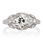 The Etta ring is an authentic vintage ring from the Art Deco Era circa 1920. The ring centers a GIA certified 1.67-carat old European cut diamond of L color, SI1 clarity. The stone is set in a 4 prong platinum setting with 10 small diamonds set throughout beautiful metalwork and engravings. The ring is currently size 6.25 and can be resized!
