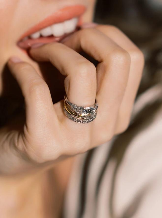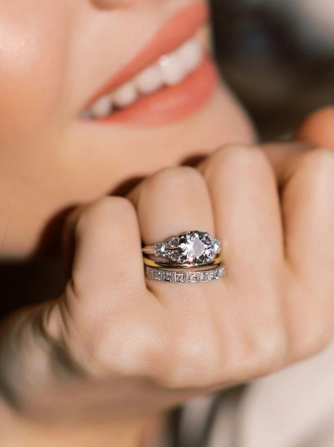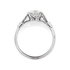 Quite an amazing piece that spans the finger beautifully. The diamond is incredibly bright and beautiful with a super white face up. The setting is unique in combining the OECs with small baguettes- a defining part of Art Deco jewelry.