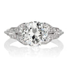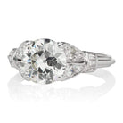 The Kiley ring is an authentic vintage diamond engagement ring. The ring centers a GIA certified 1.89-carat old European cut diamond of K color, VS2 clarity. The diamond is set in a platinum setting. Each shoulder has four old European cut diamonds and three baguette diamonds. The ring is currently size 6.5 and can be resized!