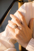The Livie ring is an authentic vintage engagement ring from the Art Deco Era. The ring centers a GIA certified 0.76-carat old European cut diamond of H color, SI2 clarity. The stone is set in a platinum setting with 12 diamonds set throughout open metalwork details. The ring is currently size 6.5 and can be resized.