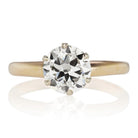 The Darlene ring is an authentic vintage ring from the late Art Deco Era. The ring centers a GIA certified 1.41-carat Transitional cut diamond of H color, VS1 clarity. The stone is set in a 6-prong platinum basket on a 14 karat yellow gold band. The ring is currently size 6.25 and can be resized!