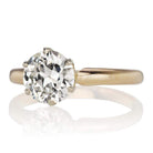 Elegant in its simplicity and one of the most classic styles of all time. This beauty centers a beautifully bright antique diamond with high specs.