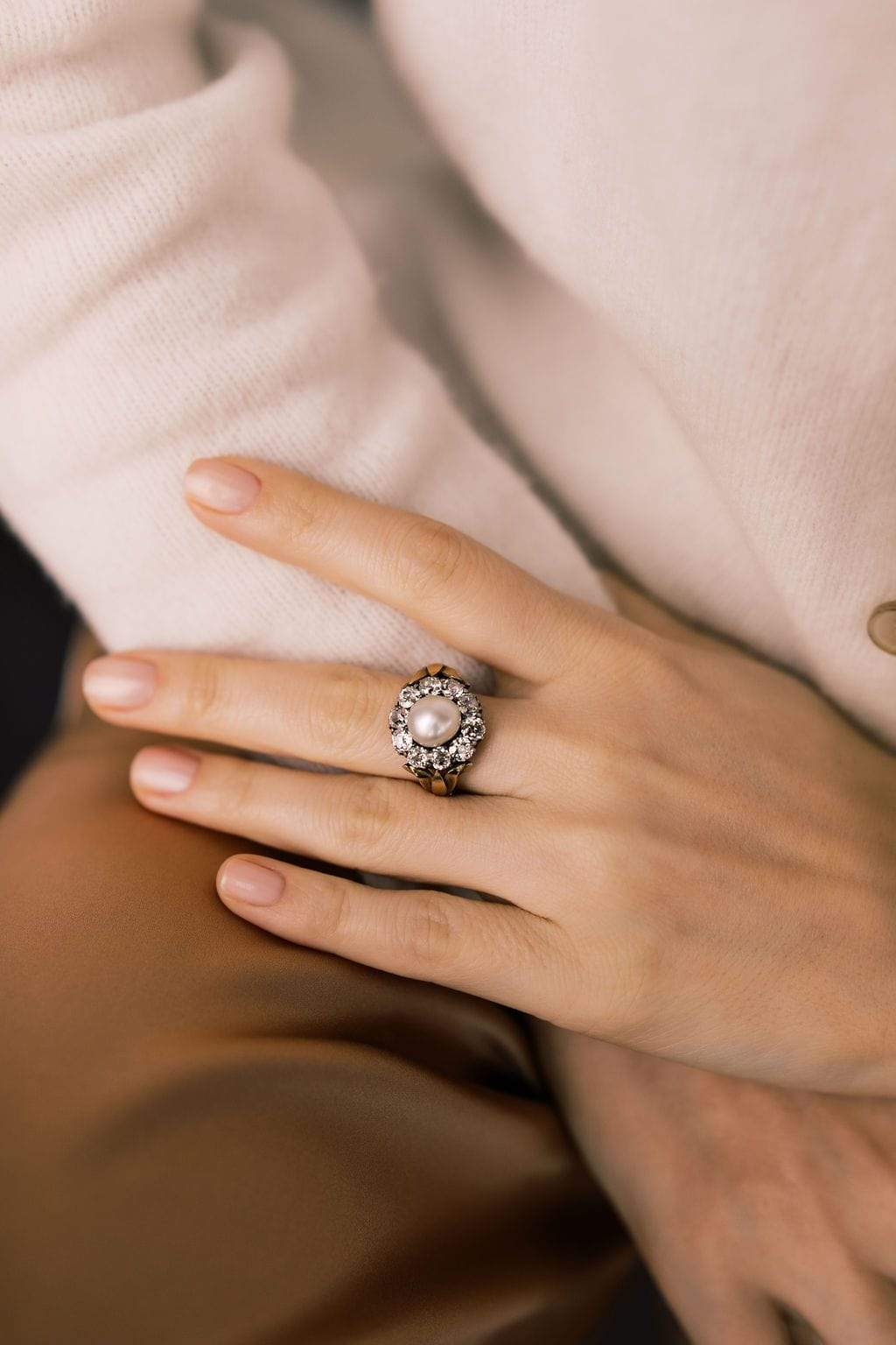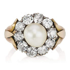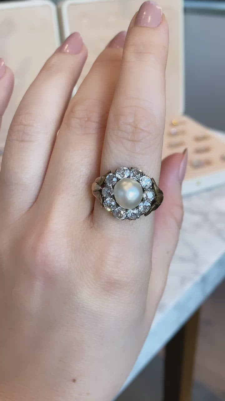 Art Nouveau Pearl & Diamond Halo Engagement Ring