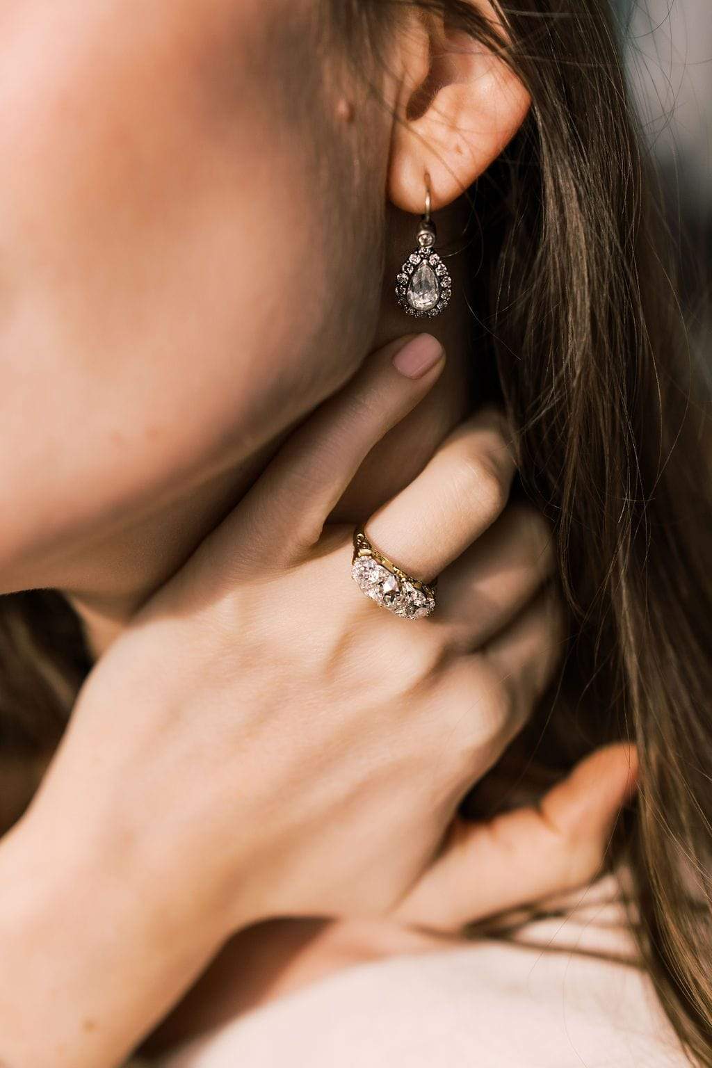 The Lorde Ring is an authentic Victorian ring from the late 1800s. The ring centers a dream of an old mine cut diamond weighing approximately 2.15 carats of K-L color, SI1 clarity. To each side is an old European cut diamond, both combining for approximately 1.40 carats of H-I color, SI1-SI2 clarity. The diamonds are all set in an 18kt yellow gold setting with little rose cut diamonds set between the three large stones. The ring is size 6 and can be resized!
