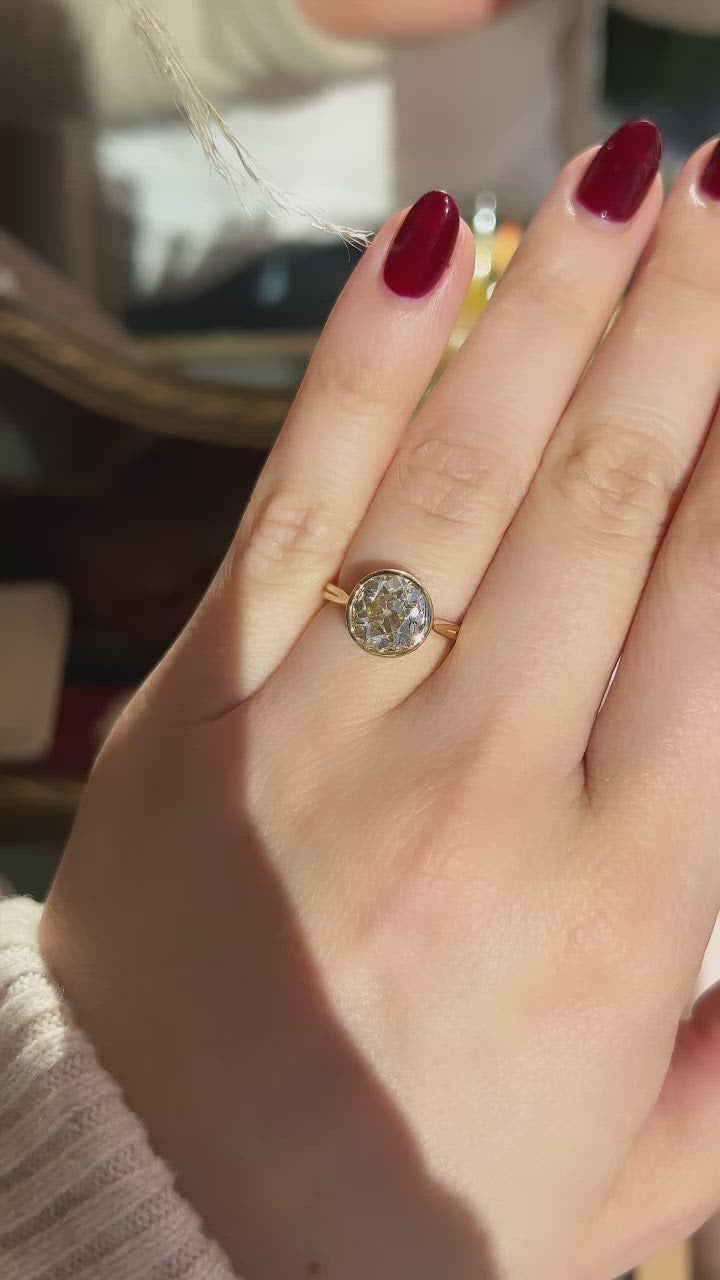 A clean, minimal setting that is both great for showcasing this beautiful antique diamond and protecting it. The low-profile makes this 3 carat stone ultra-wearable.