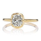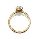 This Allie rendition centers a beautifully chunky true antique old mine cut diamond. Set in a golden collet setting that mixes antique and modern themes for a timeless look