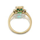 The Remmy 1.04 ring is an AB original design made right here in NYC. The ring centers a GIA-certified 1.04-carat Colombian Emerald cut Emerald of moderate clarity enhancement. A vertical baguette of approximately H-I color, VS-clarity is set to either side of the center stone combining for 0.32-carats. The stone is bezel set in an 18kt yellow gold setting. The ring is currently size 5.75 and can be resized!