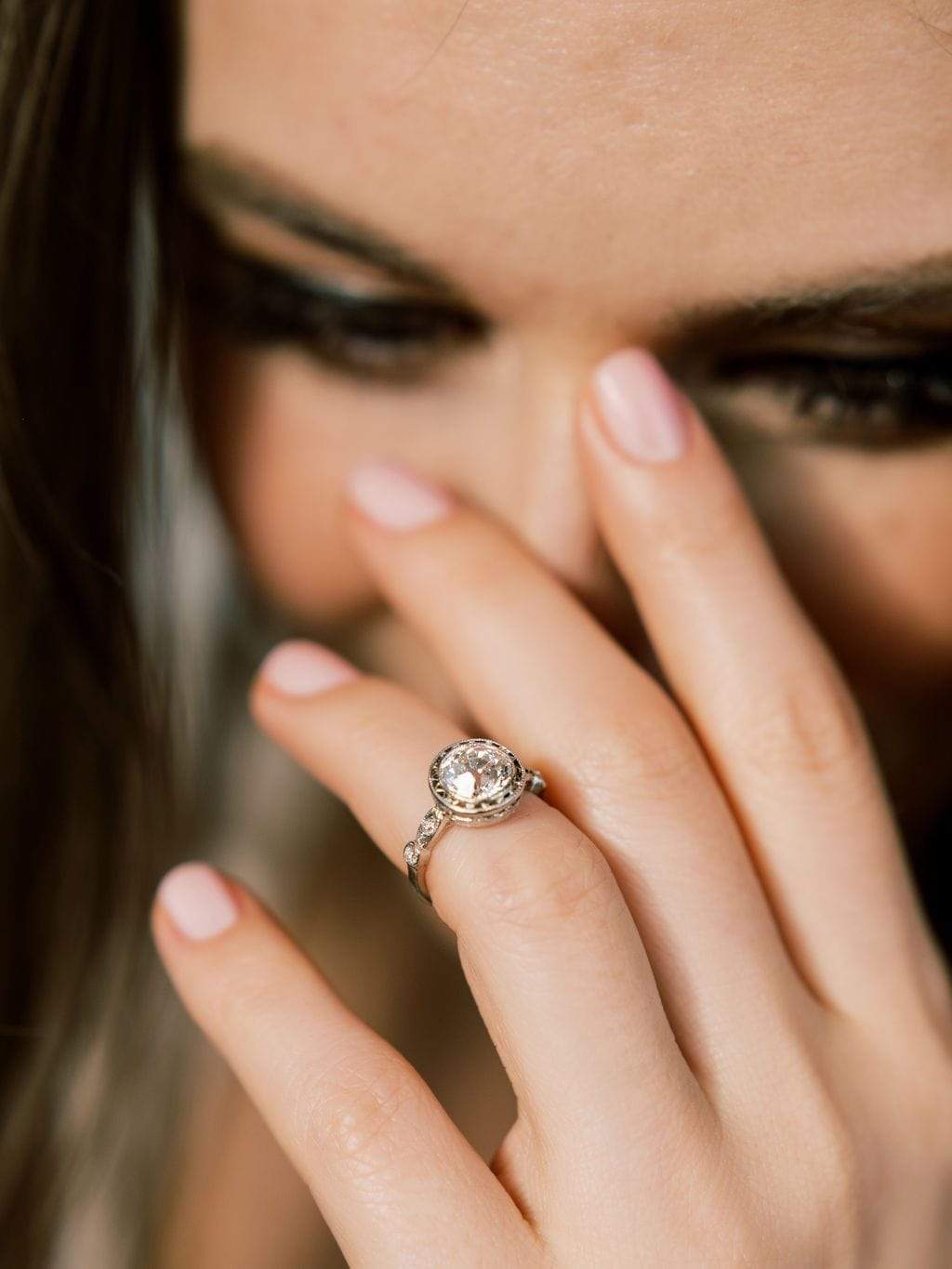 Bezel Set Diamond Engagement Ring with Filigree Halo