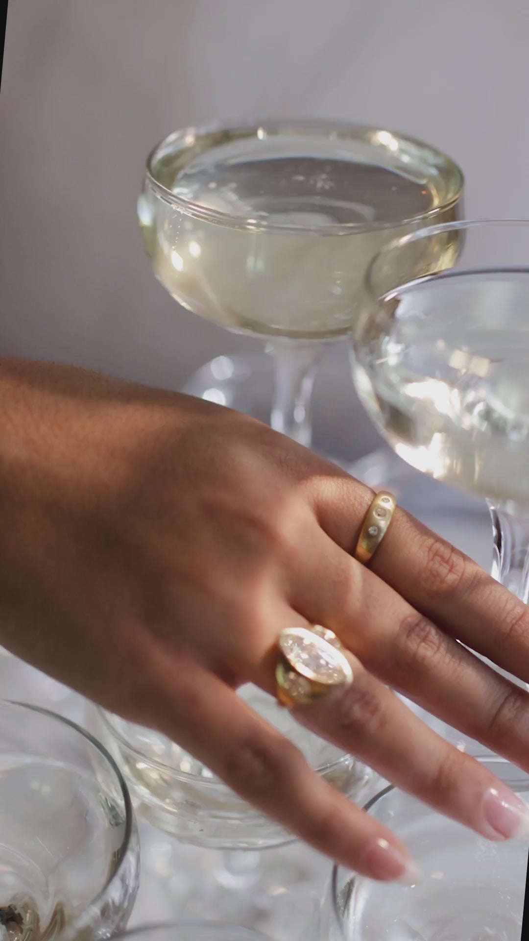 Bold and Gold was what we wanted for this look! It started out with a rare find of two antique moval side stones and developed into this mesh of modern and antique themes for a ring that is definitely one-of-a-kind.