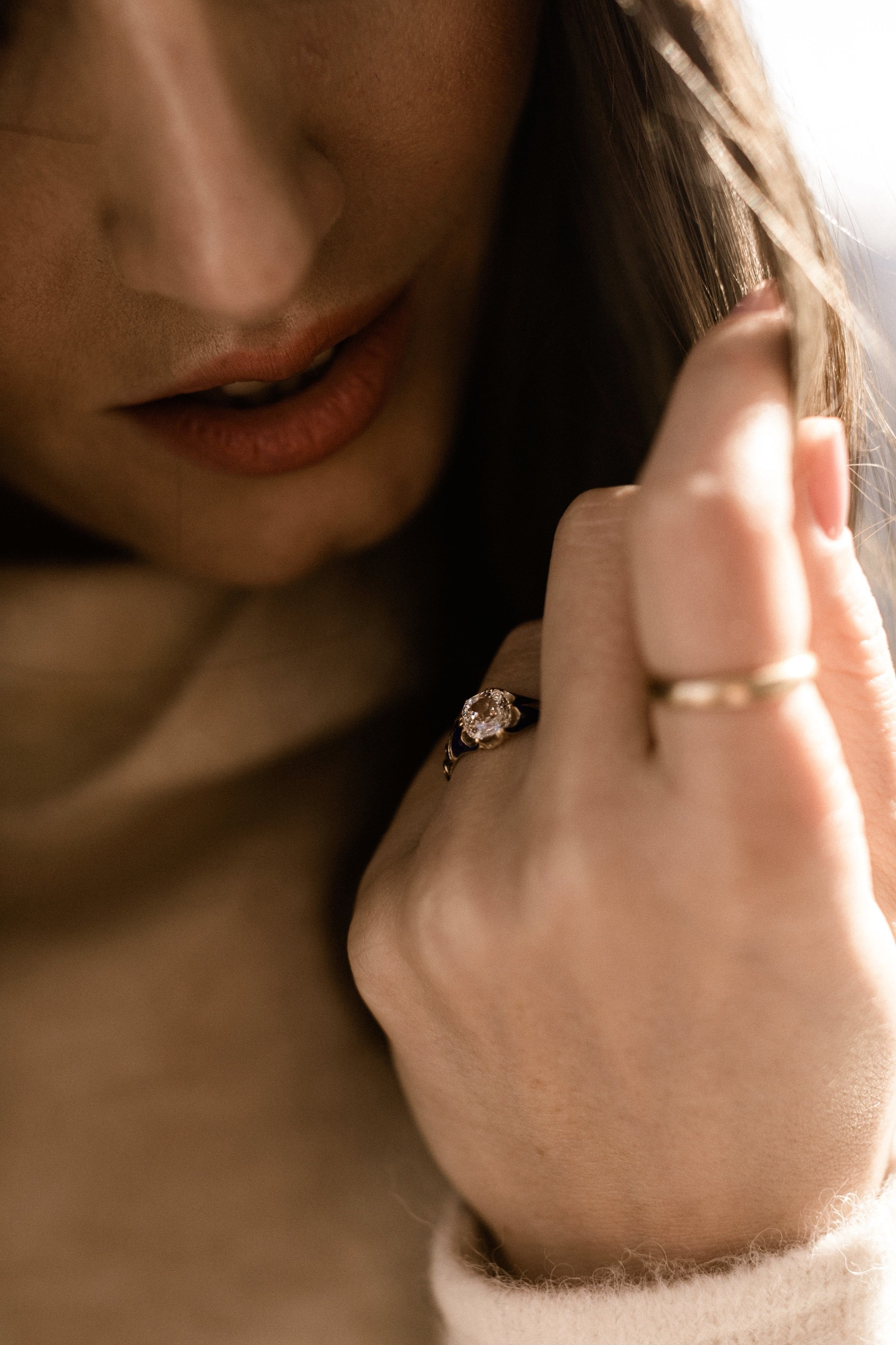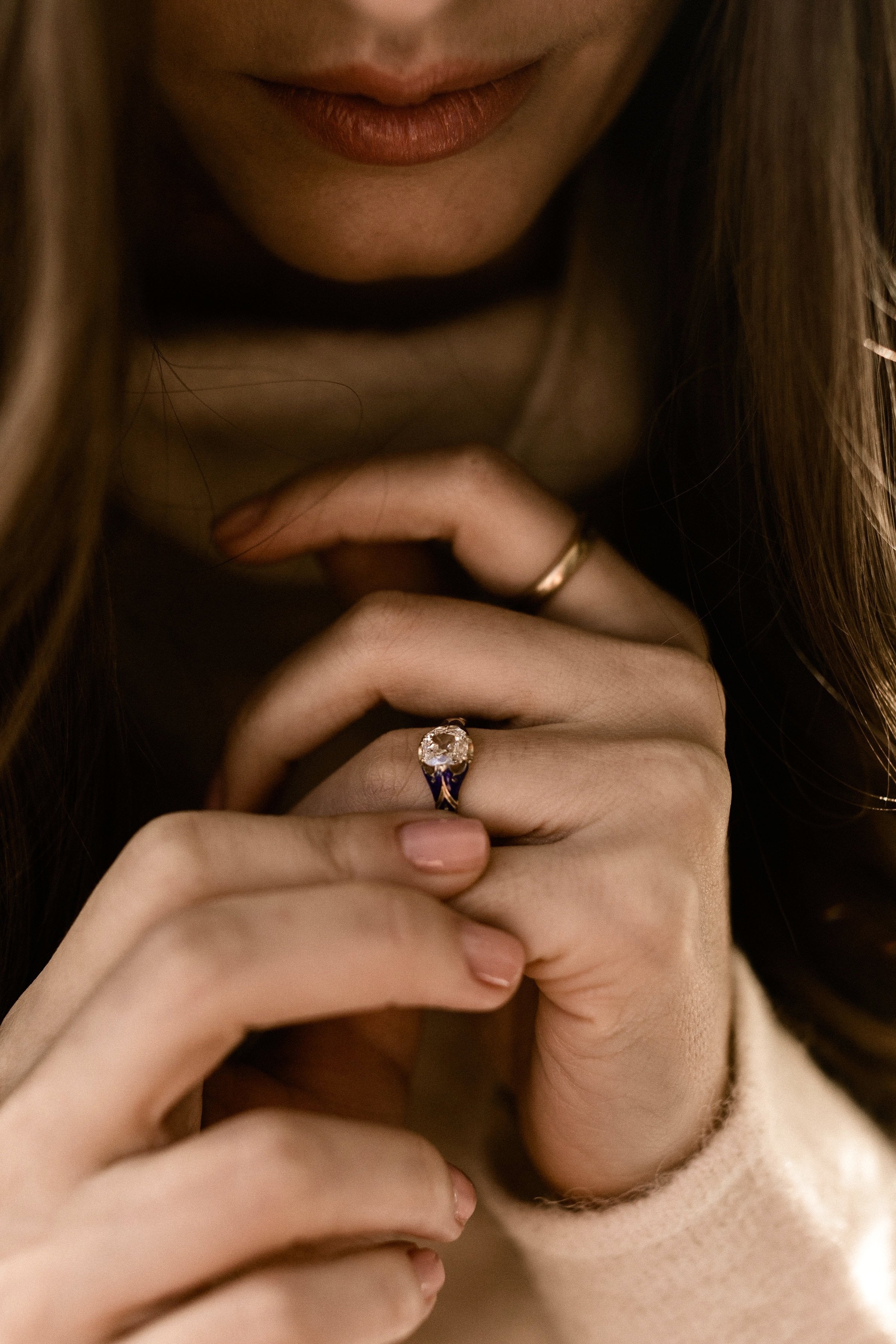 A very chic antique ring with a super shimmery diamond in a vibrant setting! Very low profile and a very easy and comfortable wear!