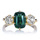Bluish-Green Cushion Sapphire and Diamond Ring