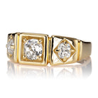 Bold Antique-Inspired Three-Stone Diamond Ring in Gold