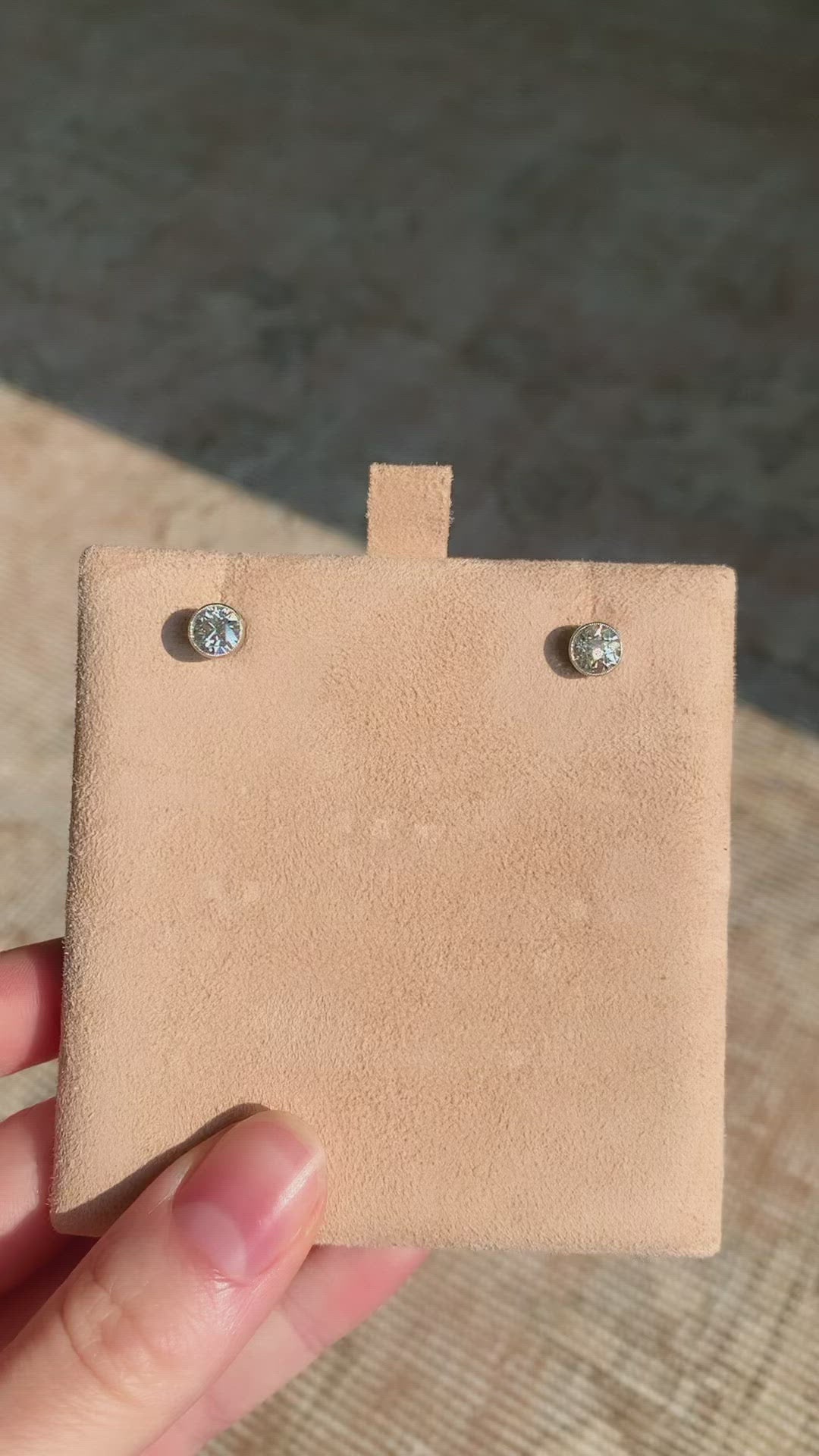 The Bosa earrings are vintage pieces! The earrings feature two old European cut diamonds that combine for approximately 1.75 carats total. The stones are approximately J-K in color, VS-SI in clarity and are bezel-set into a platinum setting!