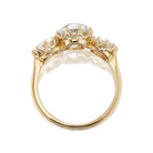 The Marielle 1.50 ring is a VB original design made right here in NYC. The ring centers a GIA-certified 1.50-carat old European cut diamond of I color, I2 clarity. The stone is set in an eight-prong 18kt yellow gold setting with an old European cut diamond set to either side. The side stones are approximately I color, VS-SI clarity and combine for 0.96-carats. The ring is currently size 4.75 and can be resized!