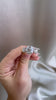The Marielle 3.36 ring is an AB original design made right here in NYC. The ring centers a GIA-certified 3.36-carat Old Mine Cut diamond of J color, VS1 clarity. A GIA-certified 1.15-carat Old European cut diamond of K color, VS2 clarity and a GIA-certified 1.16-carat Old European cut diamond of K color, SI1 clarity are set to either side of the center stone. The stone is set in a 12-prong platinum setting. The ring is currently size 5.75+ and can be resized!