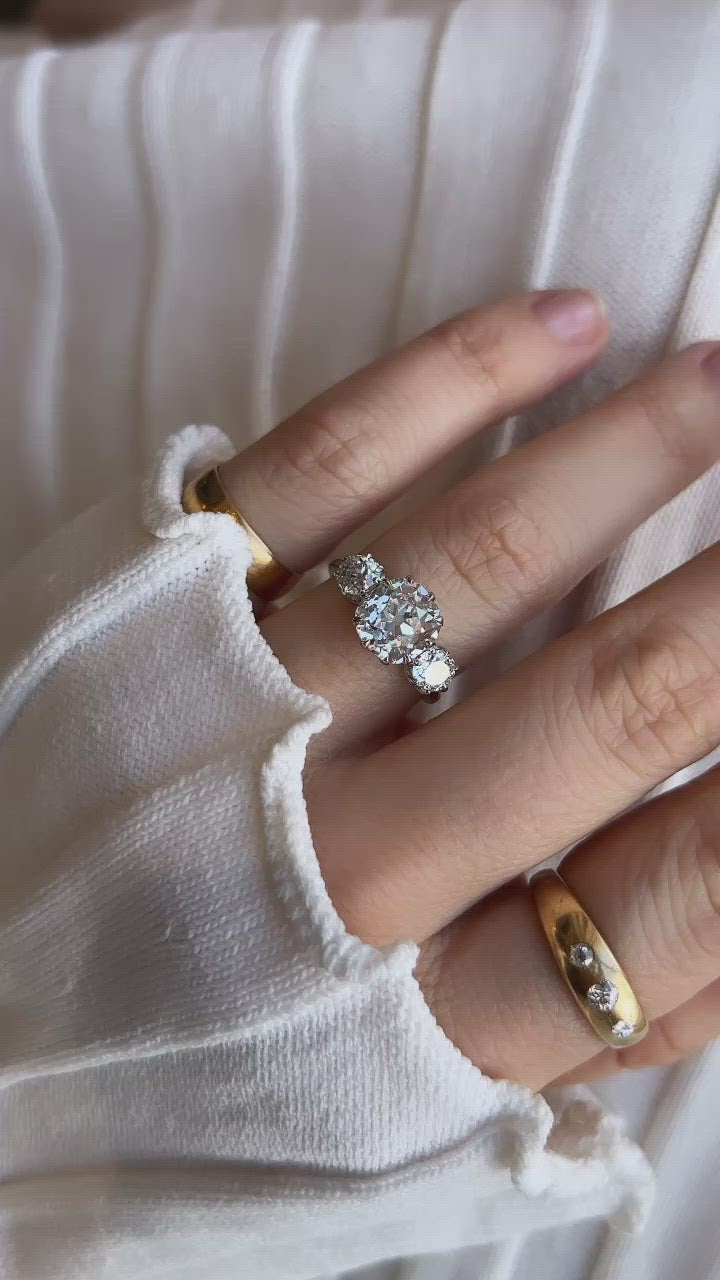 Bright Antique Diamond Three Stone Engagement Ring