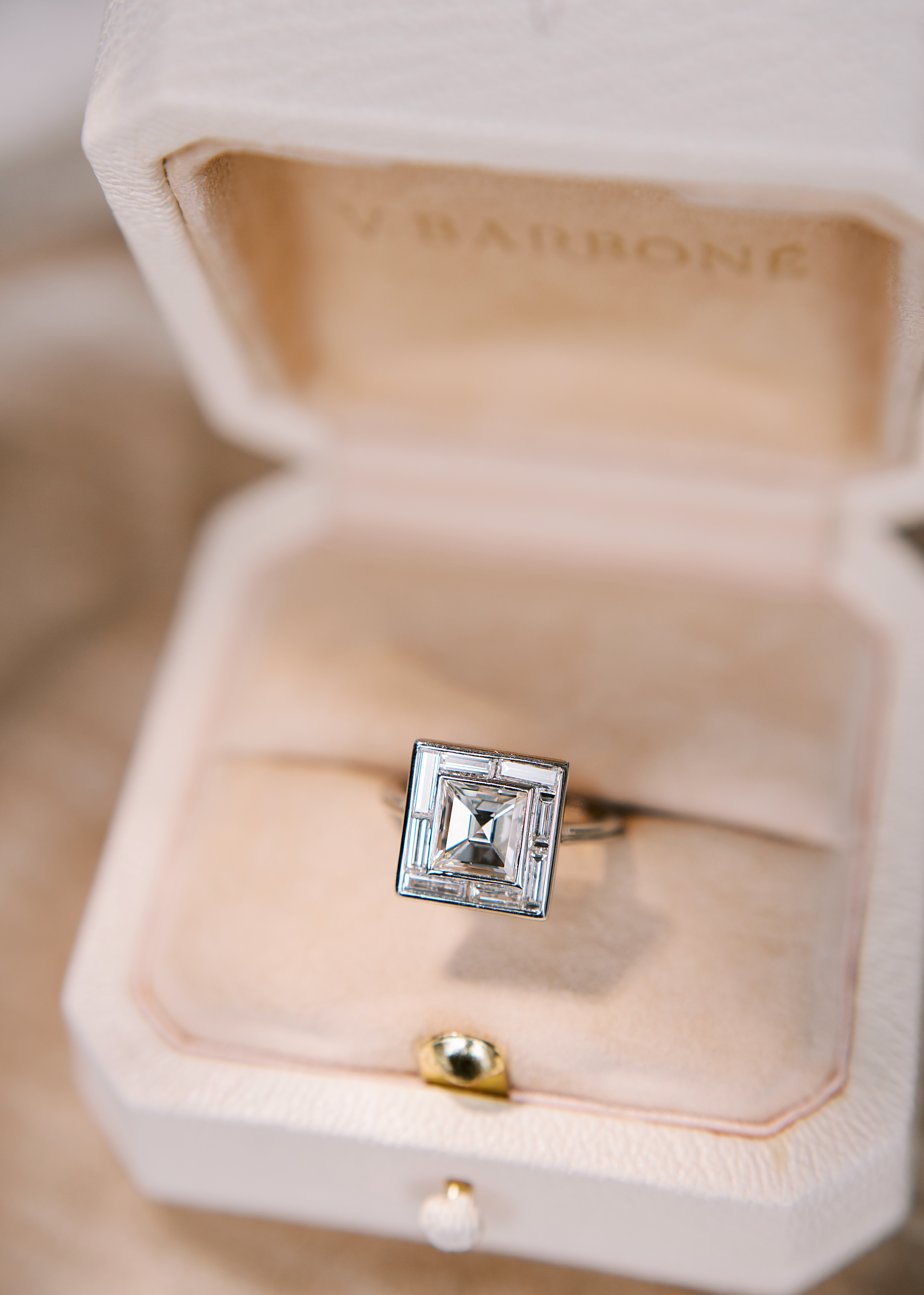 Carré Cut Diamond Ring with Unique Baguette Halo