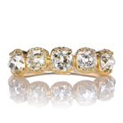 The Andria Band 1.70 is an AB original design made right here in NYC. The ring features five old mine cut diamonds of approximately M-N Light Brown color, VS-SI clarity. The diamonds combine for 1.70 carats and are collet-set in our signature 18kt yellow gold setting. The ring is currently size 6.25 and can be resized!