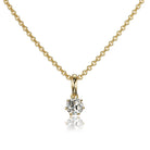 The Brigette Necklace 0.81 is an AB original design made here in NYC. The necklace features a 0.81-carat Old European Cut diamond of Q-R color, very light brown (read: a light champagne), I1 clarity. The diamond is prong-set in a pendant of our signature 18kt yellow gold and comes with an 18-inch 18kt yellow gold chain.