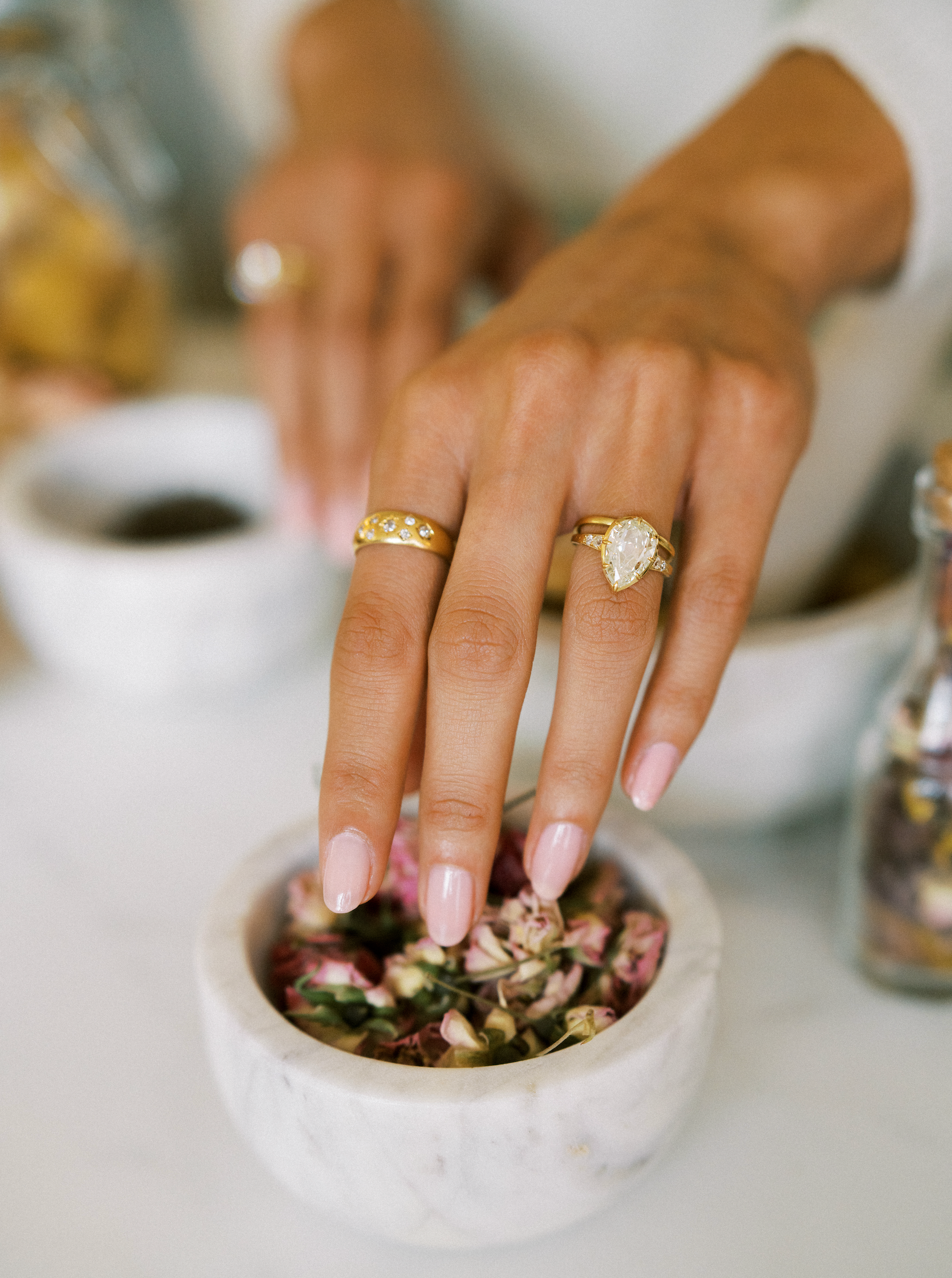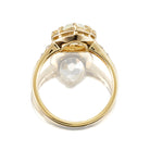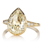 Our Andria ring combines all of our favorite antique elements into one jaw-dropping ring: a creamy 18kt gold collet setting, dainty antique side stones, and last but not least, a gorgeous warm-toned antique pear that spreads beautifully on the finger. Named for our founder and her own personal engagement ring, this is one of our most beloved styles, and this three carat rendition is pear-fectly executed.