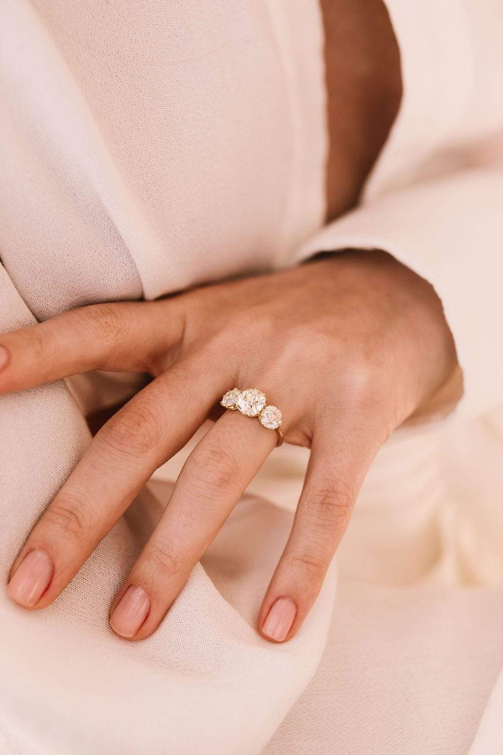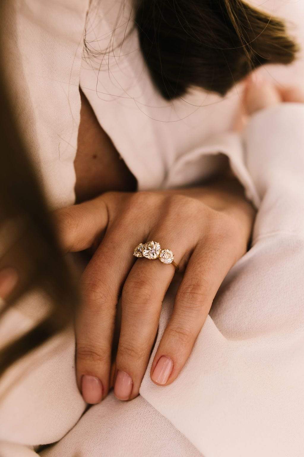 A perennial favorite, the Marielle style has three chunky, beautiful antique diamonds that spread the finger beautifully for a big look!