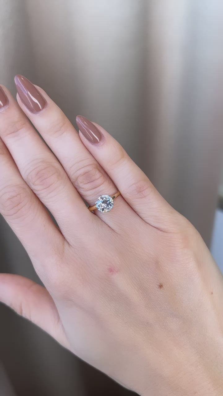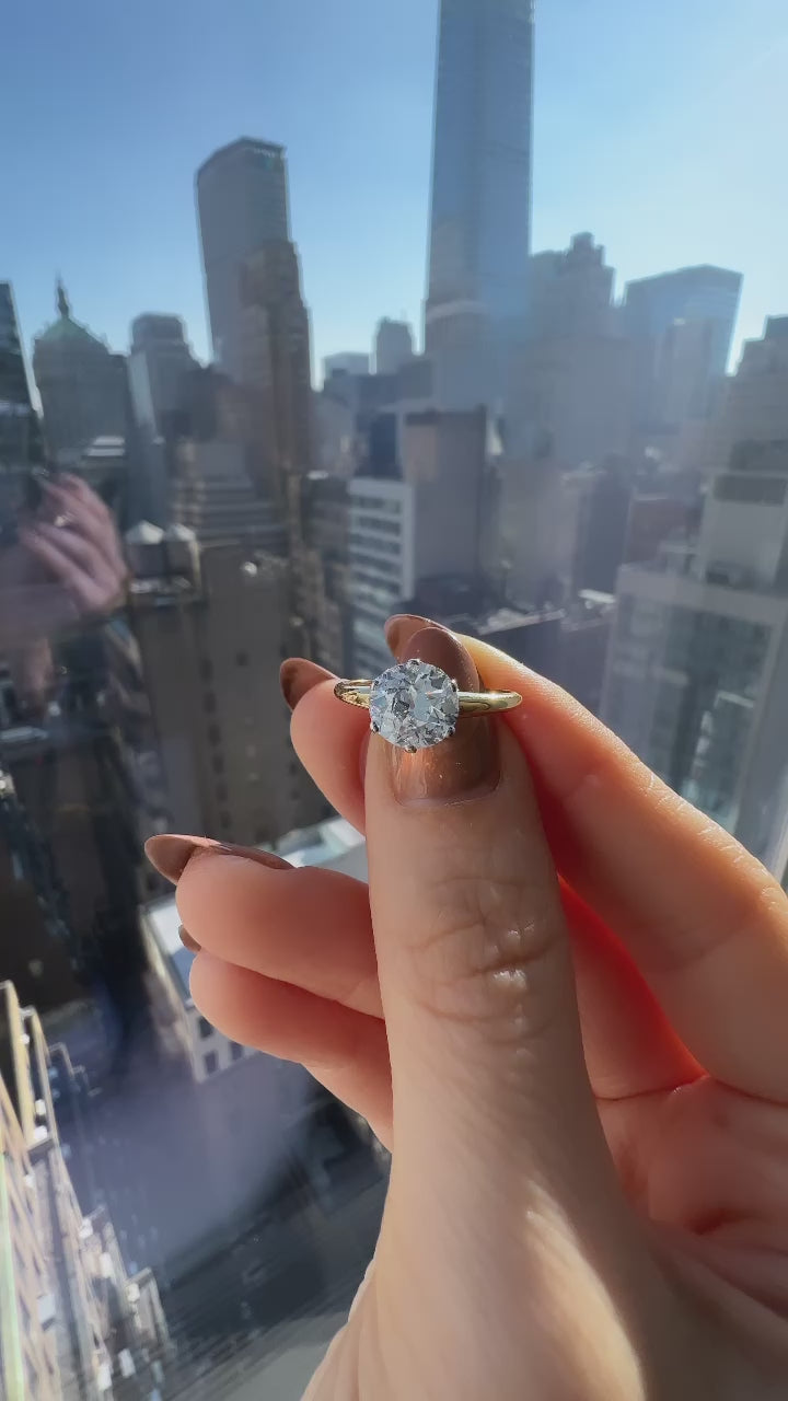 This stunning Tiffany's piece centers a gorgeous Old European cut diamond with high specs in the classic two-tone vintage Tiffany solitaire- the solitaire setting that set the tone for engagement rings for the 100+ years to follow.