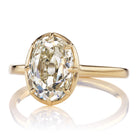 The Allie 3.01 ring is an AB original design made right here in NYC. The ring centers a GIA-certified 3.01-carat old mine cut diamond of M color, SI1 clarity. The stone is collet set in an 18kt yellow gold setting. The ring is currently size 6 and can be resized!