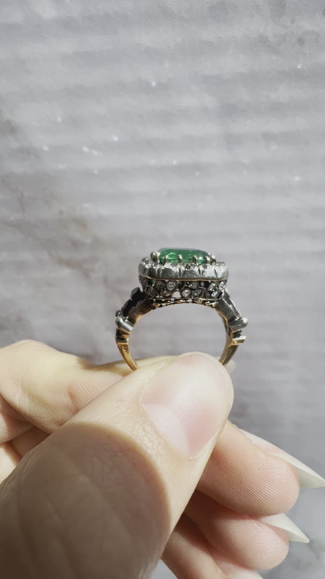 Colombian cushion cut vintage emerald ring