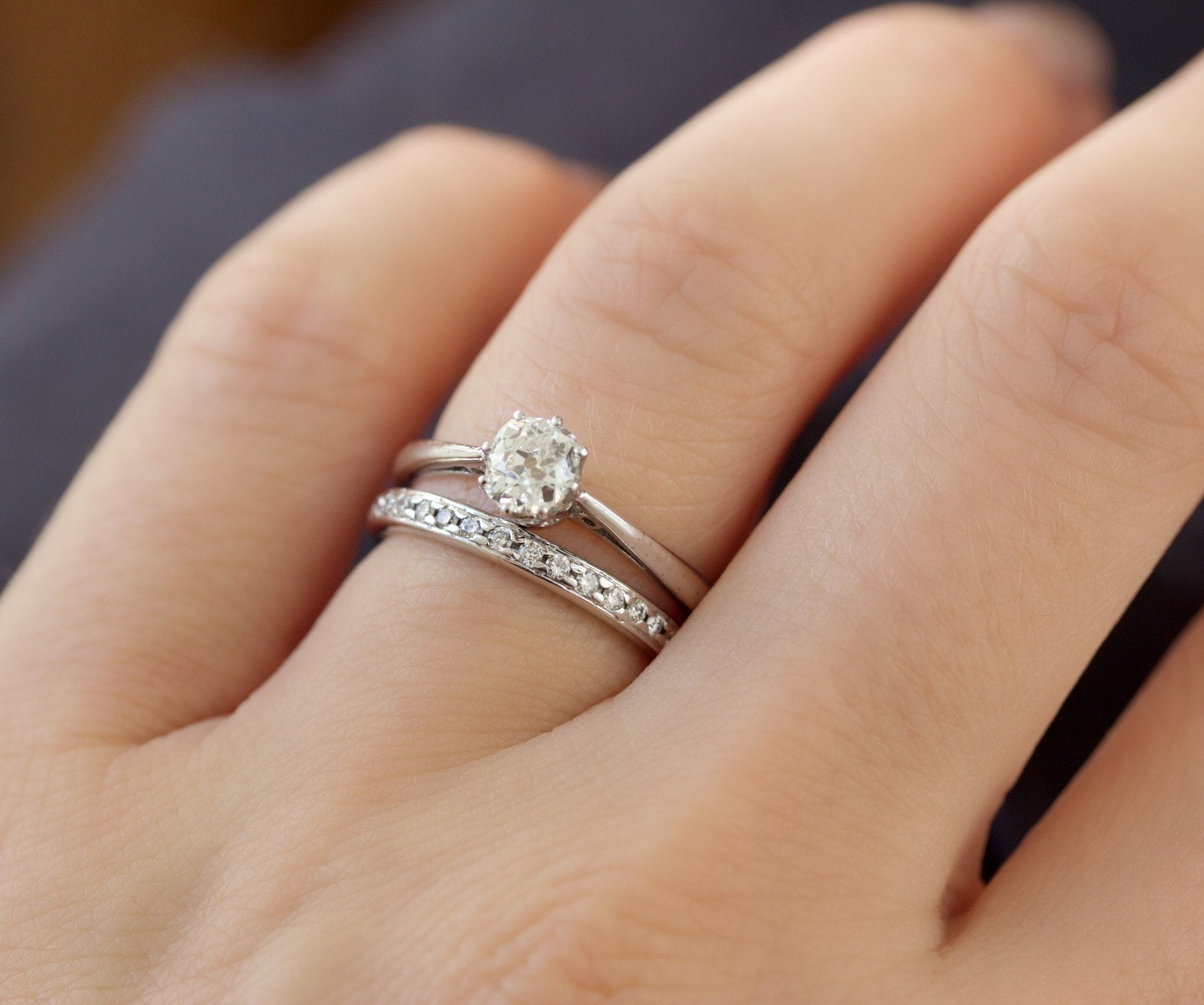 This ring centers a gorgeous, chunky OMC with the perfect size culet! The diamond is very bright and the look is very simple and minimalist!