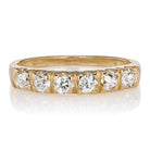 The Devon 0.63 band is an AB original design made right here in NYC. The ring features 6 old mine cut diamonds of approximately J-K color, VS-SI clarity combining for 0.63-carats. The stones are prong-set in an 18kt yellow gold setting. The ring is currently size 5.5 and can be resized!