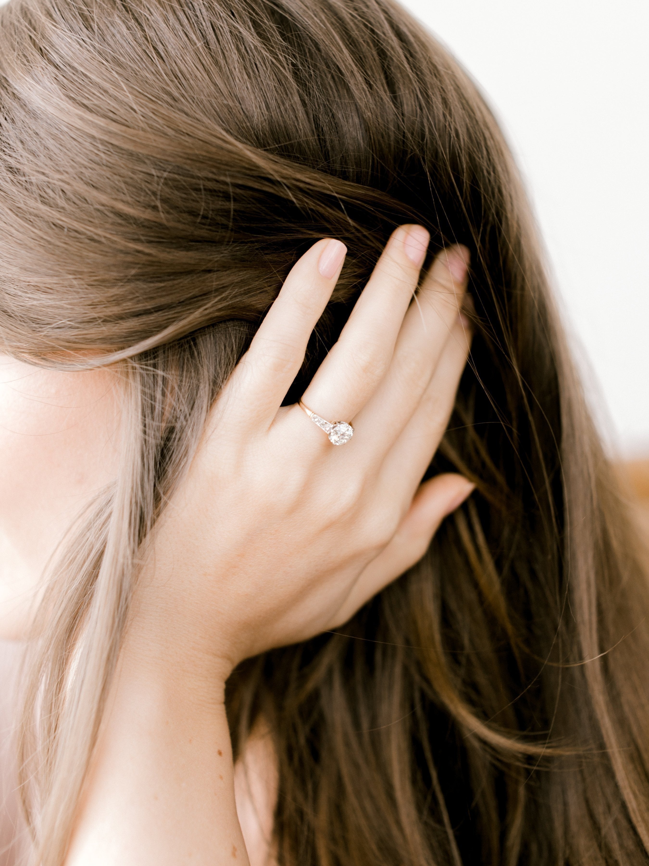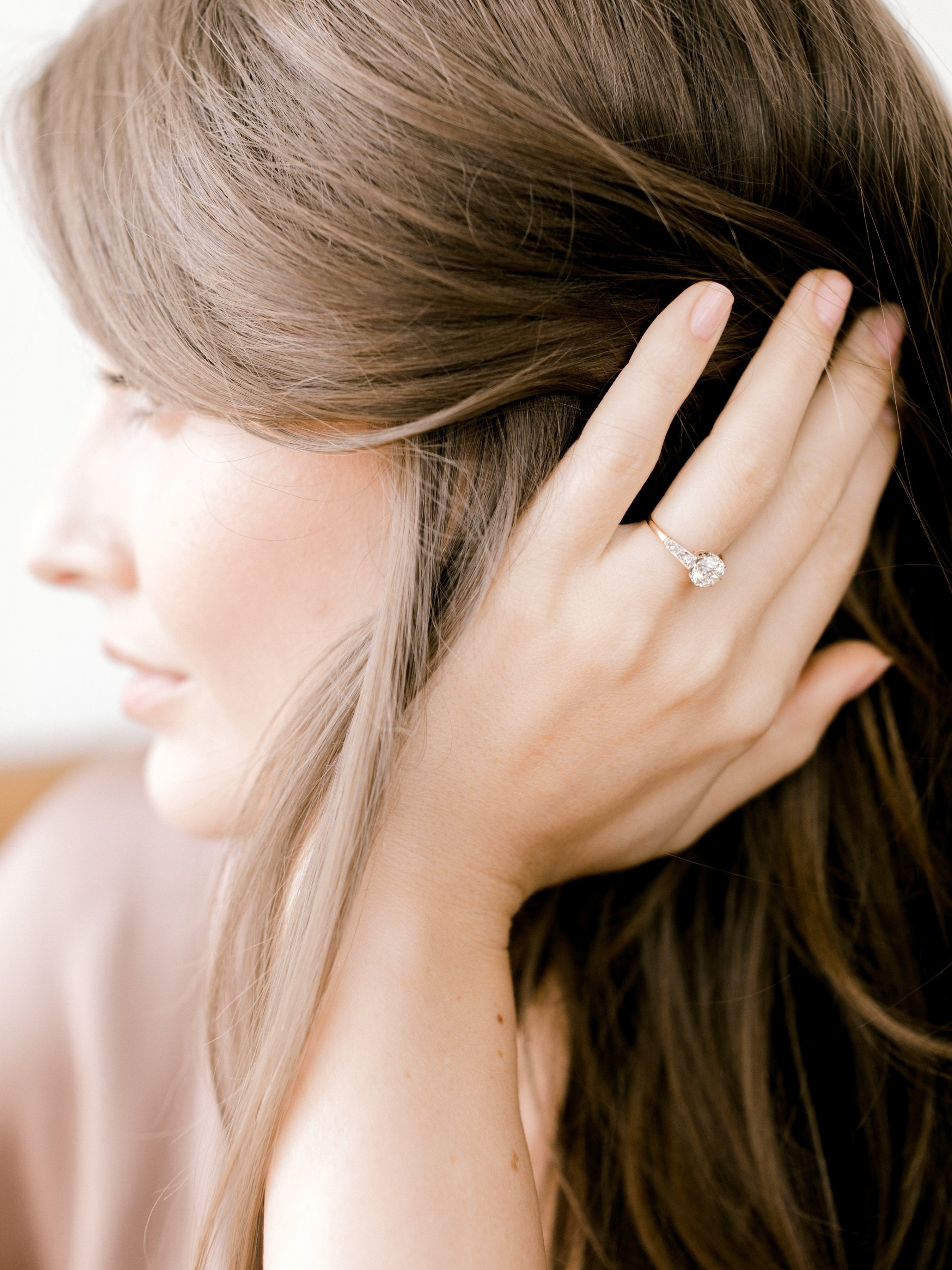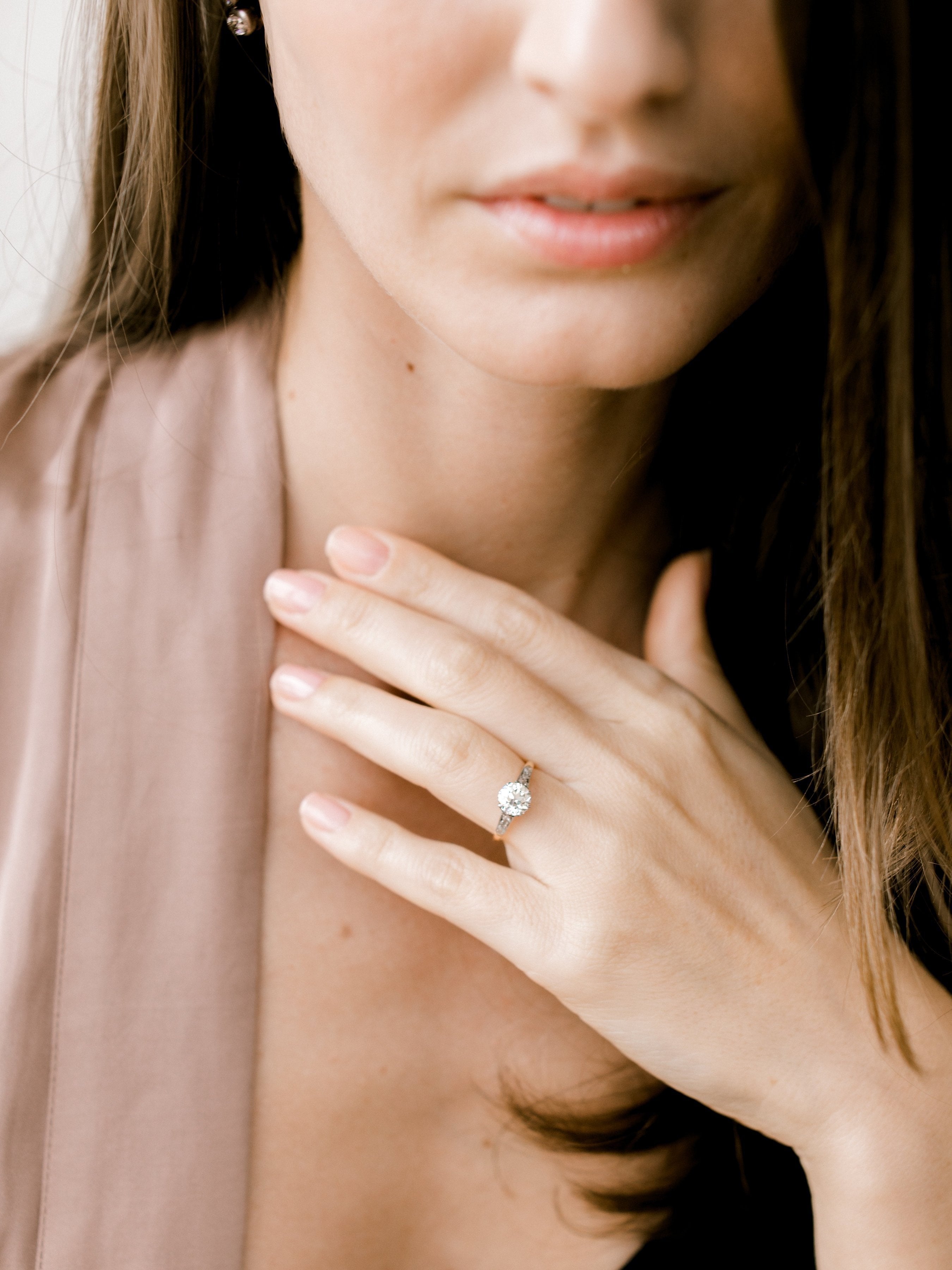 The diamond on this ring is incredibly bright and beautiful! The ring is super low profile and pairs well with bands!