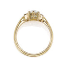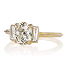 The Petra 1.24 ring is a vintage-inspired ring made by us here in NYC using an authentically antique diamond. The ring centers a GIA certified 1.24-carat old mine cut diamond of L color, SI1 clarity. The stone is set in a 6-prong 18 karat yellow gold setting. The side stones are diamond baguettes and combine for approximately 0.12 carats. The ring is currently size 6 and can be resized!
