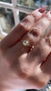 We love the charming shape of this gorgeous antique center stone which contrasts beautifully to the round side stones.