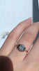 A beautiful, slightly elongated old mine cut diamond centers our classic Petra ring. The royal blue sapphires add the perfect, slightly bold contrast to this chic piece.