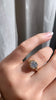 A unique design that blends some vintage and modern motifs for a unique yet classic look. The ring is super low-profile with beautiful antique diamonds spanning the finger.